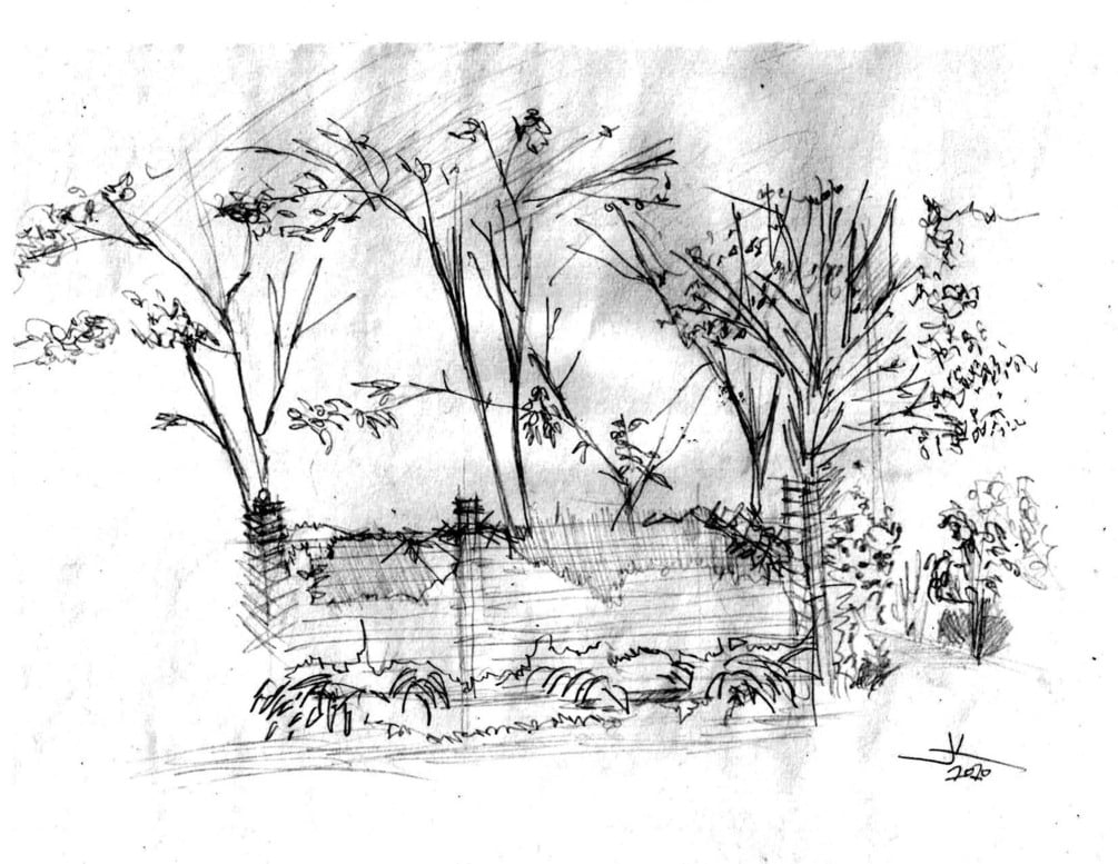 This is a free hand drawing of an outdoor landscape using pencil on A4 cartridge paper on location.This is a part of a series called 100 days of practice. Sketching landscapes.